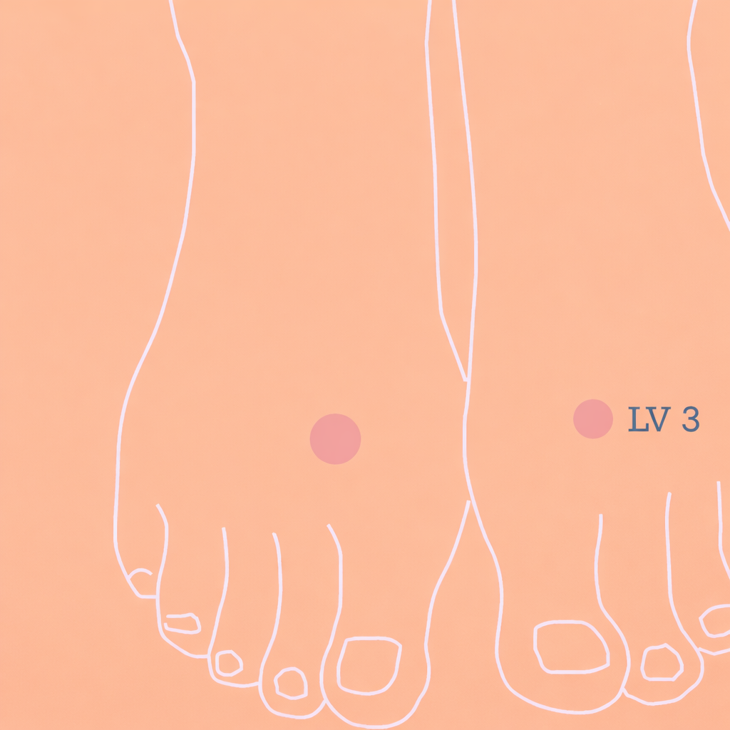 Found on the top of the foot between the big toe and second toe, this point helps relieve stress-related tension and supports emotional regulation. It is often paired with LI 4 for headache support.